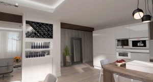 - Sisteme de iluminare incastrate sub blat si in corpurile superioare, actionate din telecomanda.
